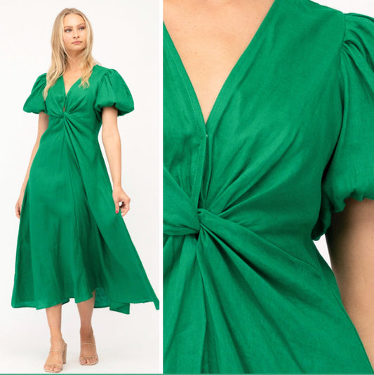 Sold outChrystal Twist Green Linen Dress
