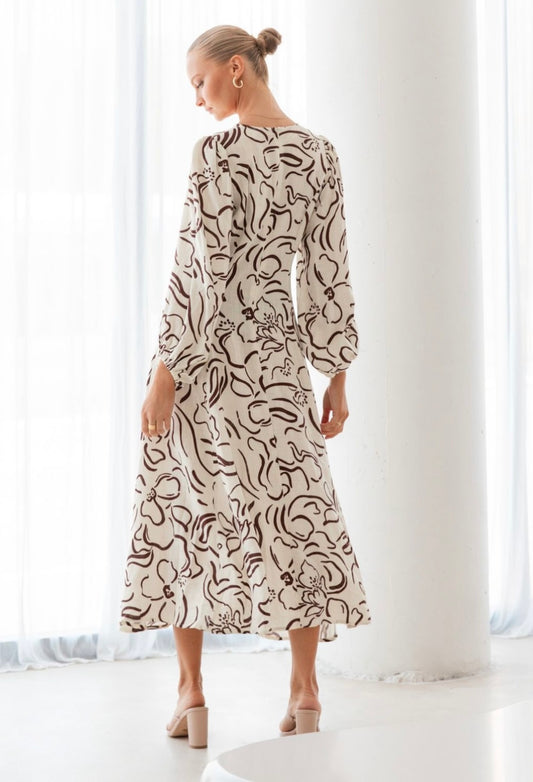 Chloe Twist Beige and Chocolate Linen Dress