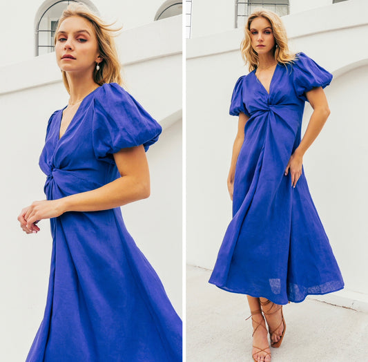 Sold outChrystal Twist Blue Linen Dress