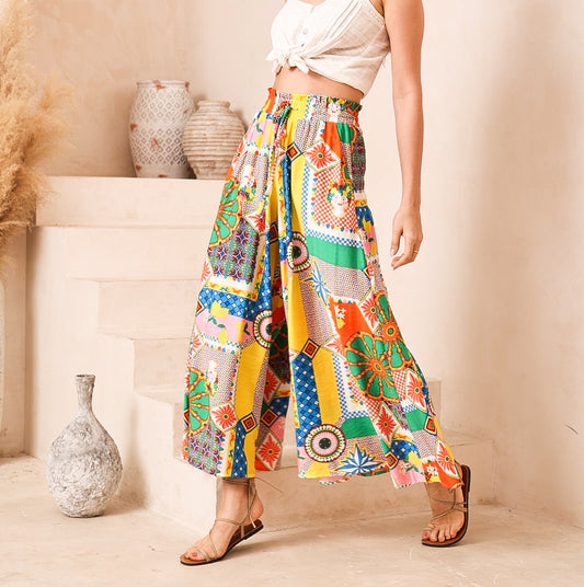 Frida Green/Orange/Blue Print Palazzo Pants