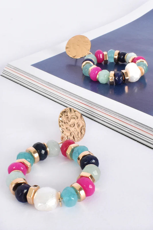 Adorne - Pearl Mix Hoop Earrings, Cream/Multi