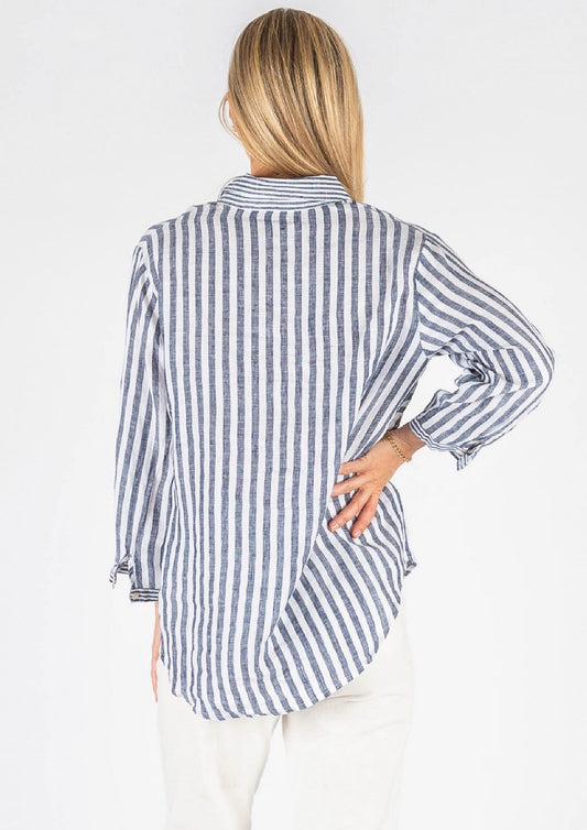 Sold outHyatt Linen Navy Stripe Shirt