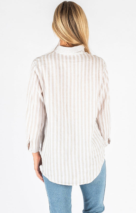 Hyatt Linen Natural Stripe Shirt