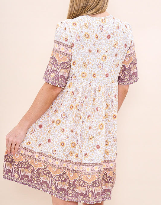 Iris Maxi - Lilly Babydoll Dress, Beige Print