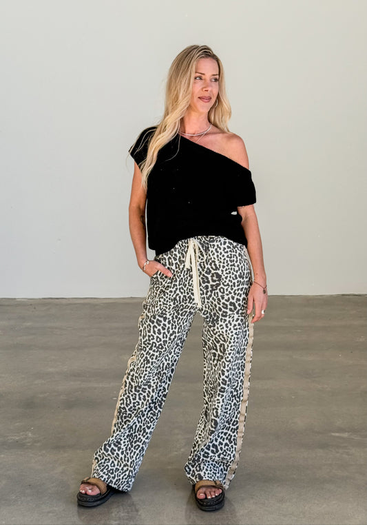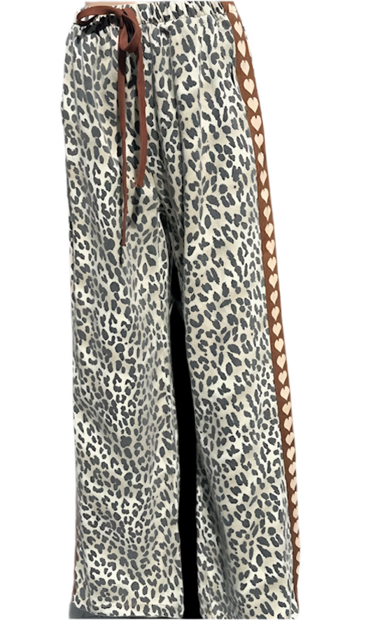 Leo Mocha Hearts Wide Leg Leopard Denim Pant