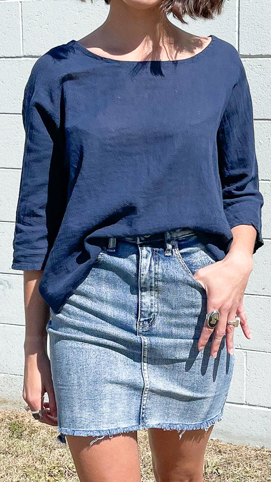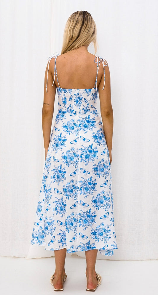 Lisa Blue and Lemon Striped Linen Shirt Dress