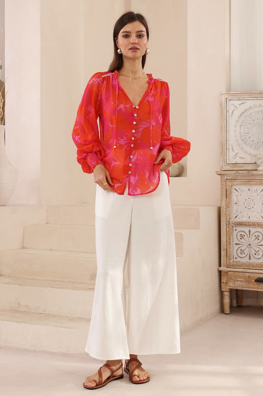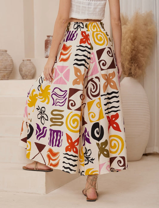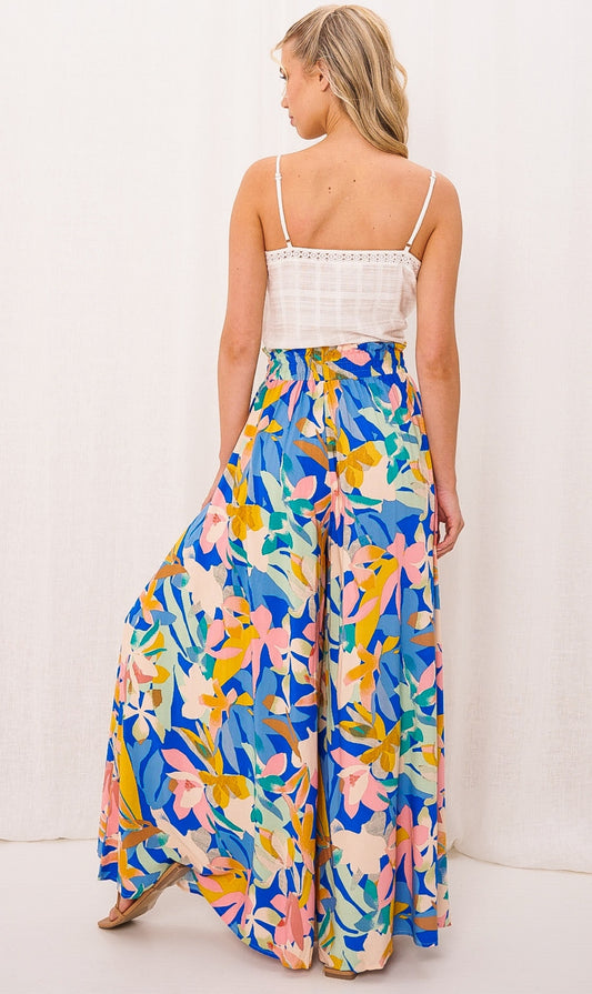 Panama Blue/Pink/Mustard Block Print Palazzo Pants