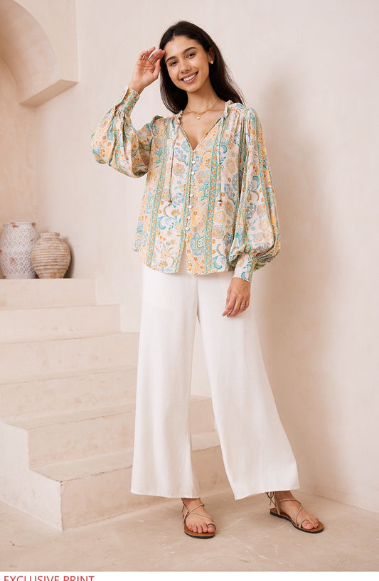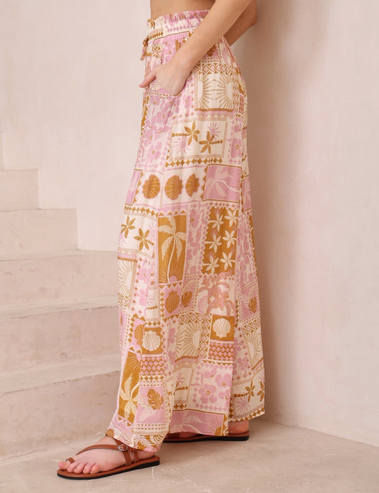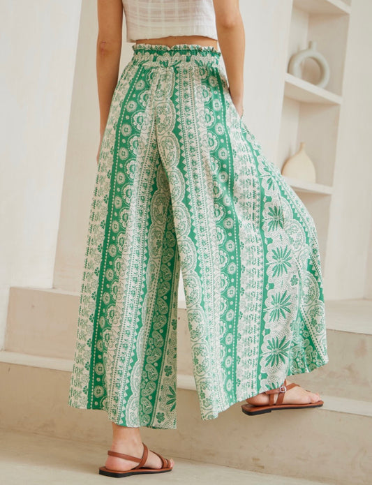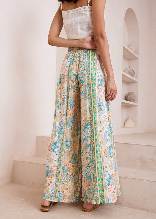 Panama Green/Orange/Pale Yellow Floral Palazzo Pants