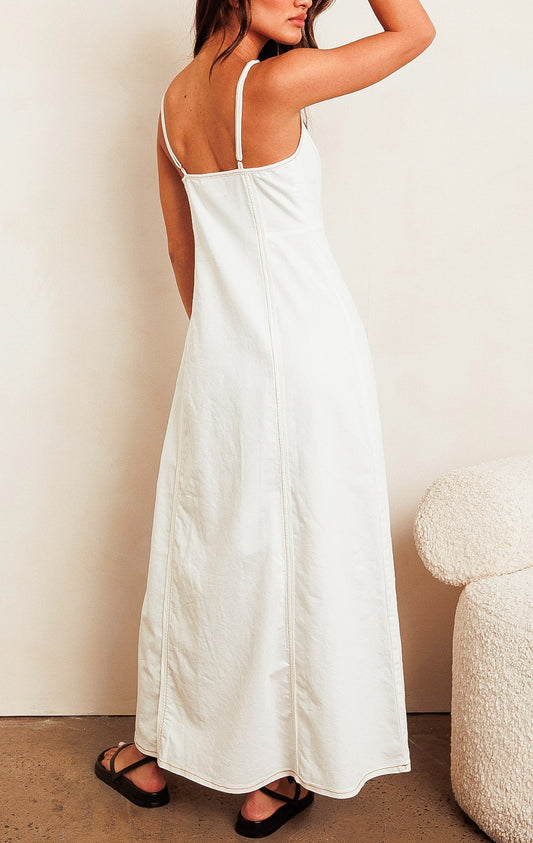 Camilla White w/ Tan Contrast Stitch Denim dress
