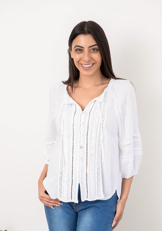 Bronte Ivory Linen 3/4 Sleeve Top