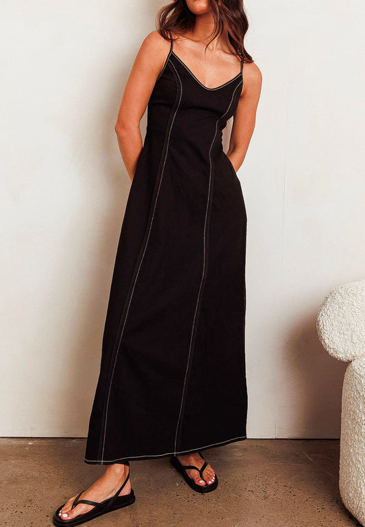 Camilla Black w/ White Contrast Stitch Denim dress