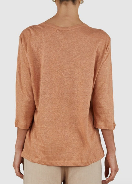 Sold outBronte Rust Linen 3/4 Sleeve Top