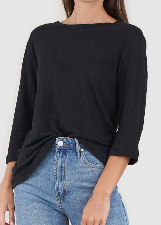Bronte Black Linen 3/4 Sleeve Top