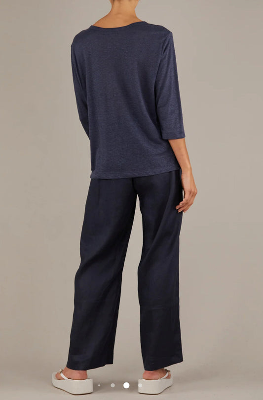 Bronte Navy Linen 3/4 Sleeve Top