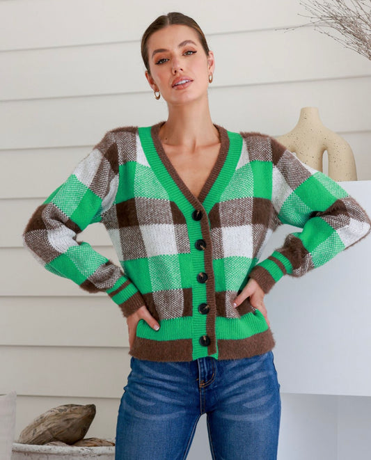 Sold outPiper Cardi, Charcoal/Rust/Turquoise