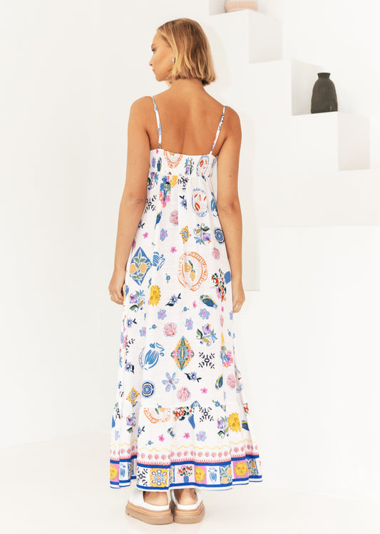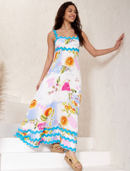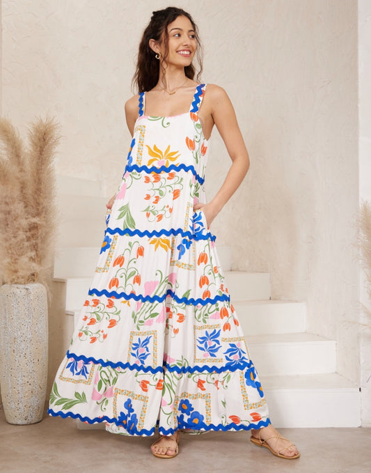 Sold outSummer Blue/Pink Ric Rac Maxi Dress