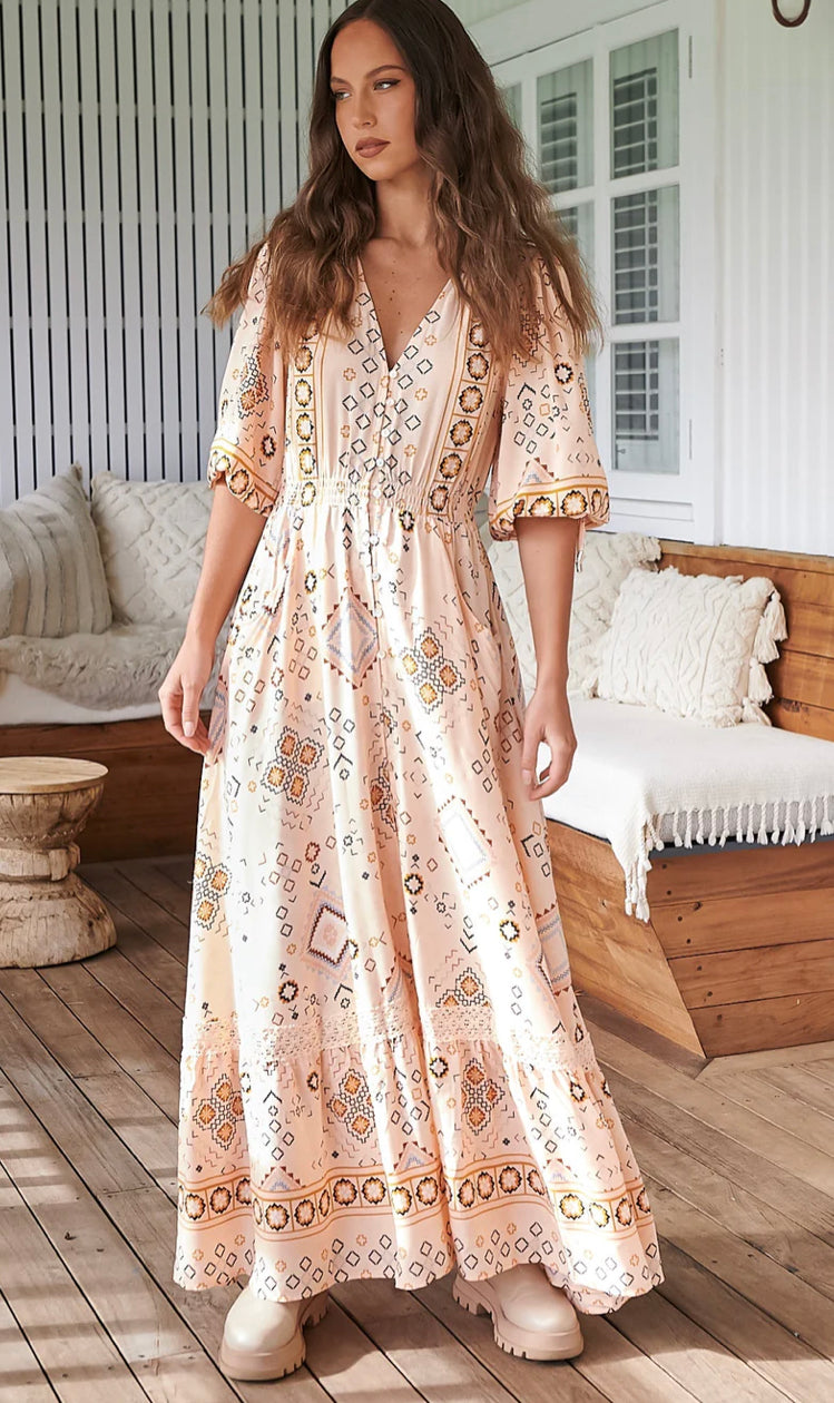 The Elsie Print is the perfect autumn hues for any wardrobe and our gorgeous Molli shape is an effortless style suitable for all body shapes! Style up with some nude wedges and silver accessories or dress down with some statement sandals. Perfect for any occasion!