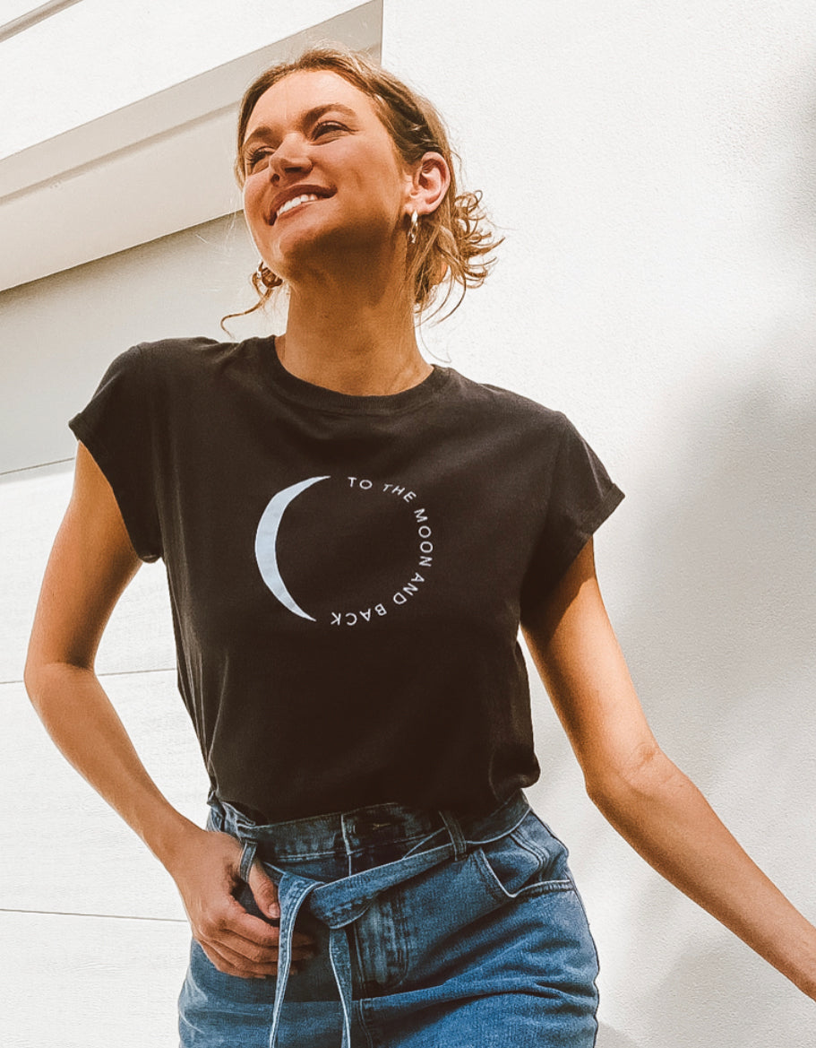To The Moon and Back Vintage Wash with Moon Symbol Print makes the Best Birthday or Christmas Present for the one you Love