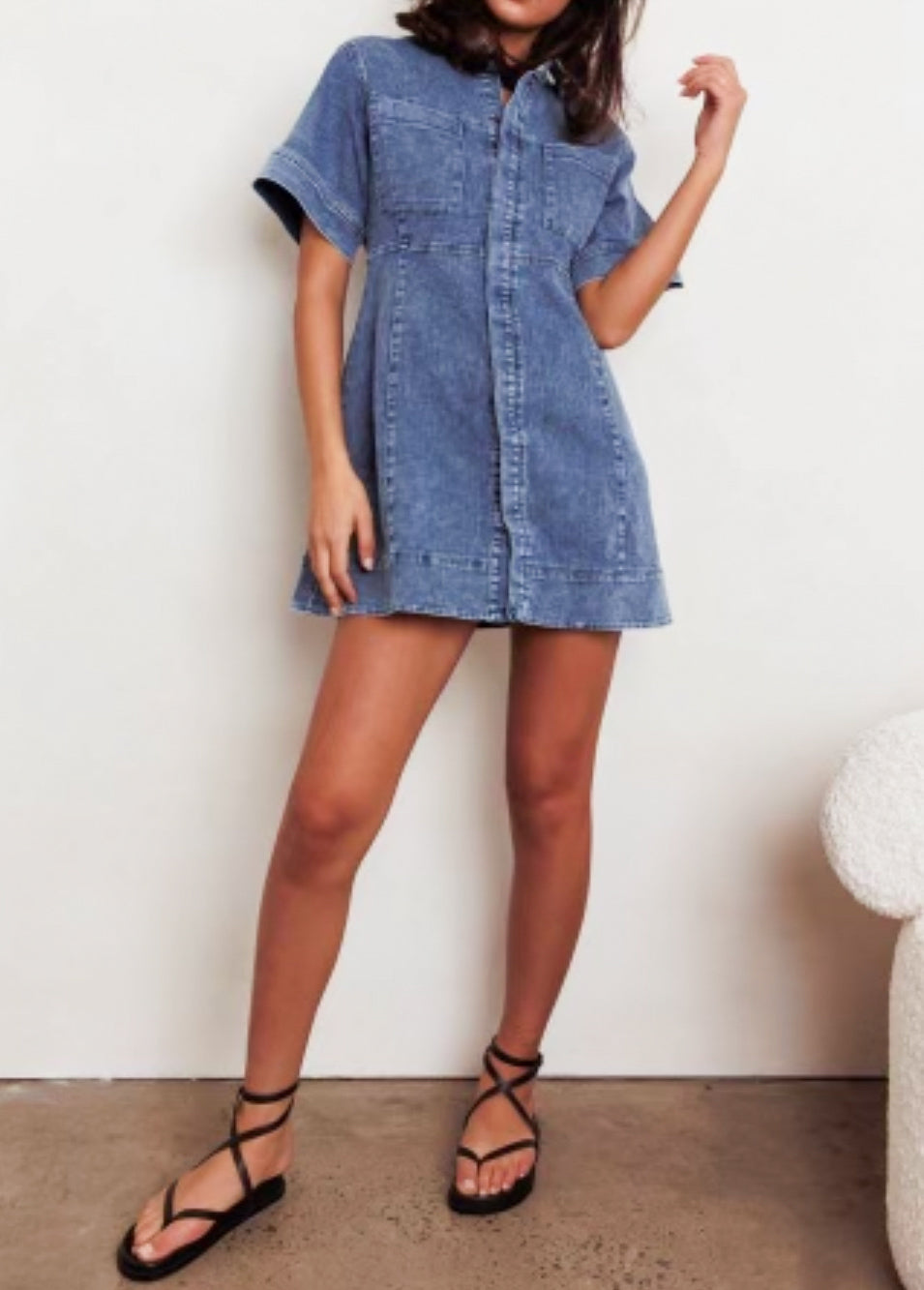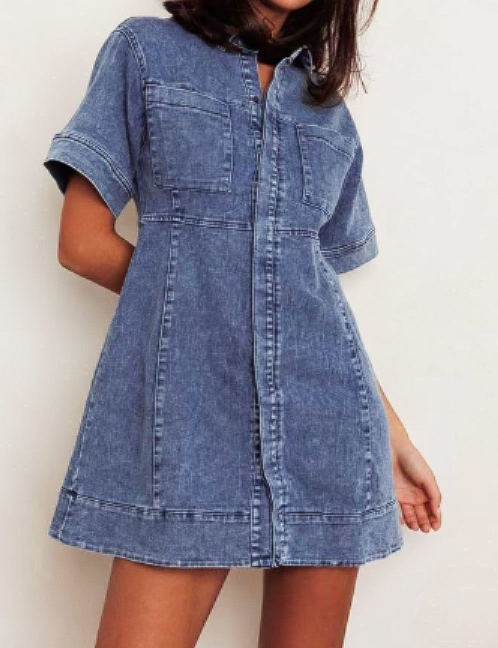Kelly denim Dress is a Light Weight Cotton/Spandex Fabric. Add Slides or Sneaker for a more Casual look. Dress Up with Your Favourite Pair of Platform Sandel