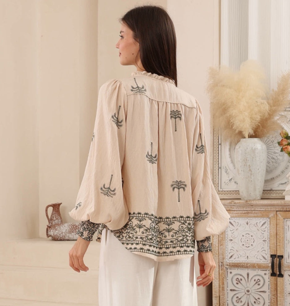 The Shirred Cuff and stunning Balloon Sleeve, float over the arm.